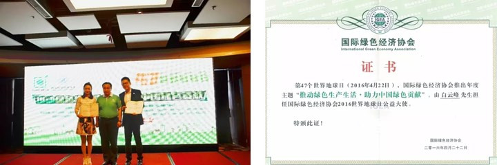 世界地球日公益盛典旨在向全社會發起綠色公益倡導,呼吁人們愛護地球、保護家園。國際綠色經濟協會(IGEA)選擇在綠色公益活動中肩負環保使命、積極投身社會公益事業和具有突破創新意識的公眾人物擔任綠色公益大使,以期用榜樣的力量帶動綠色經濟發展,提升全民環保意識。