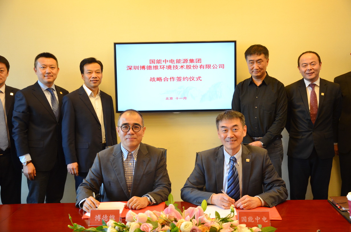 2017年11月8日上午,國能中電能源集團有限責任公司與深圳博德維環境技術股份有限公司達成戰略合作協議,并在國能中電集團總部舉行了簽約儀式。博德維總裁蕭龍、技術副總裁王秦、北京公司總經理崔艷軍,國能中電集團副董事長裴少華,國能中電集團董事、北京國能中電節能環保技術股份有限公司總裁初煒,國能中電集團副總裁、國峰清源生物能源有限責任公司總經理楊靜、北京國能中電節能環保技術股份有限公司副總裁寇宏偉,國能中電(北京)投資有限責任公司總經理王邁,國能中電能源集團廣東分公司常務副總經理張翼,北京國能中電節能環保技術股份有限公司設計院副院長黃準等領導出席了簽約儀式。