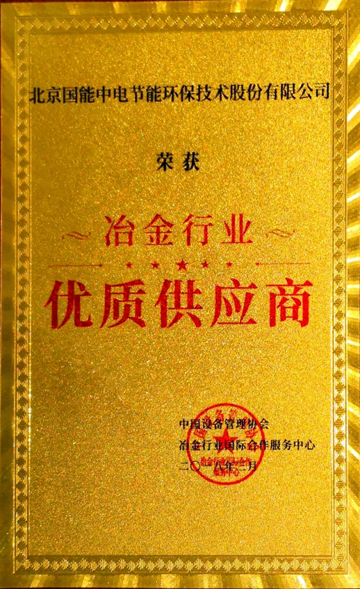 本次高端研討會,北京國能中電節能環保技術股份有限公司還獲得了"冶金行業優質供應商”大獎。隨著我國對于生態文明建設的加強,鋼鐵冶金等行業轉型升級的需求,我們衷心希望國能中電的炭基催化劑一體化脫除技術能夠為我國鋼鐵及其他非電行業的大氣污染治理、為中國的環保事業做出貢獻。