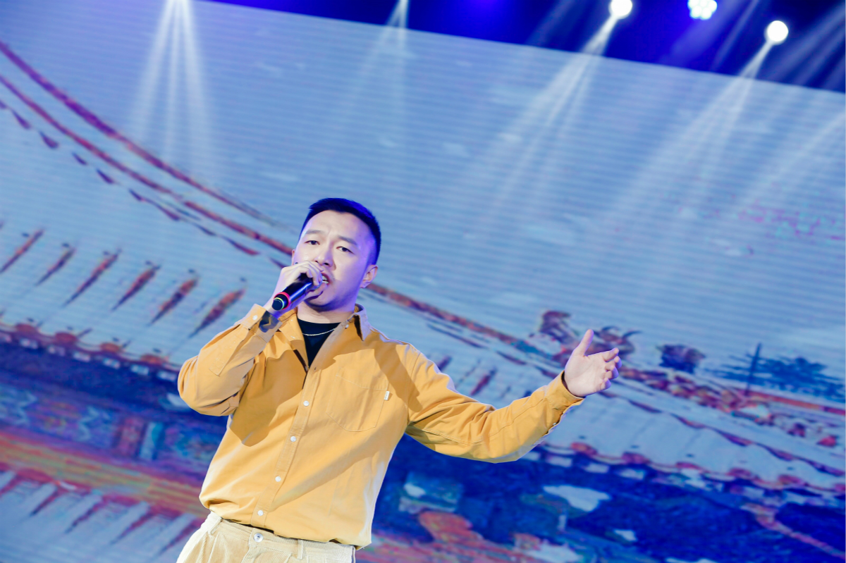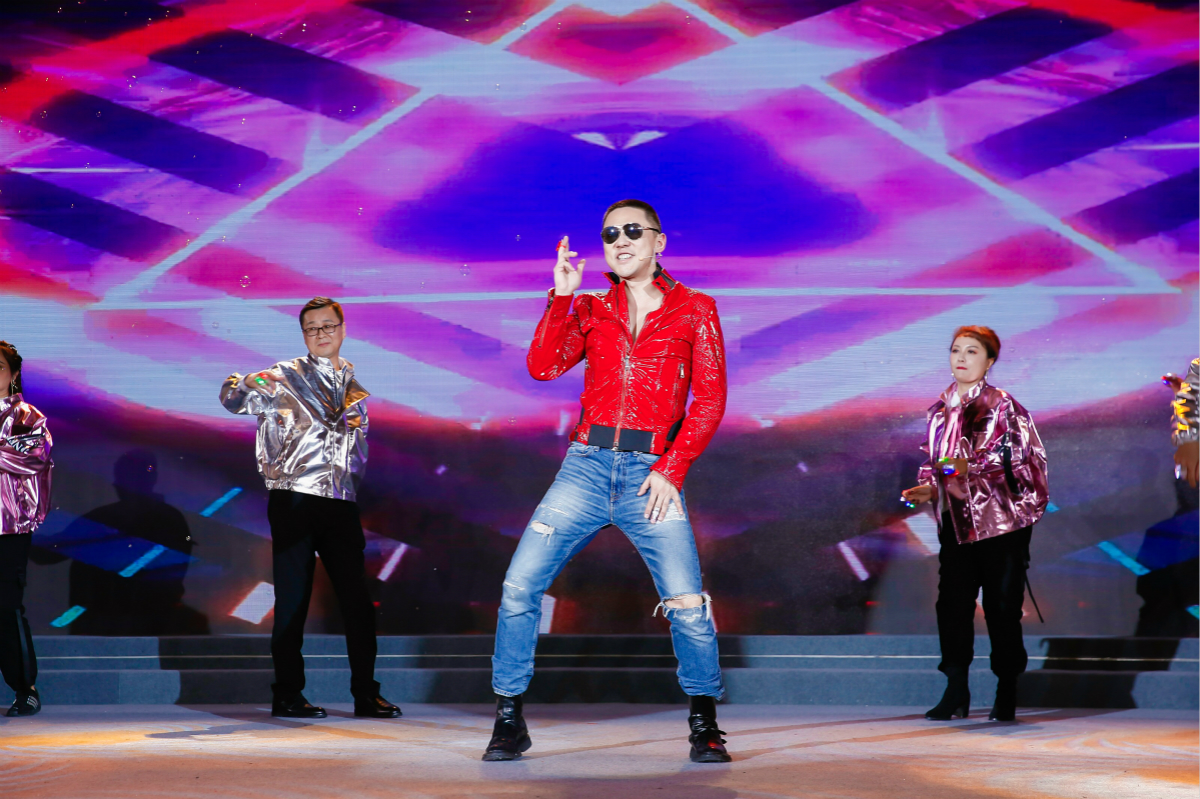 白總率領公司高管層唱跳國能版《野狼disco》,點燃全場熱情,把晚會推向高潮。