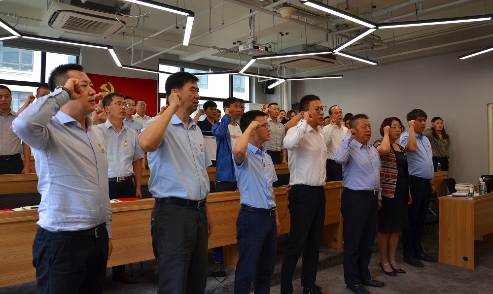 在宣誓環節,全體黨員高舉右拳面向黨旗,表情肅穆,眼神堅毅,慷慨而深情地誦讀入黨誓詞,字字鏗鏘,句句堅定。