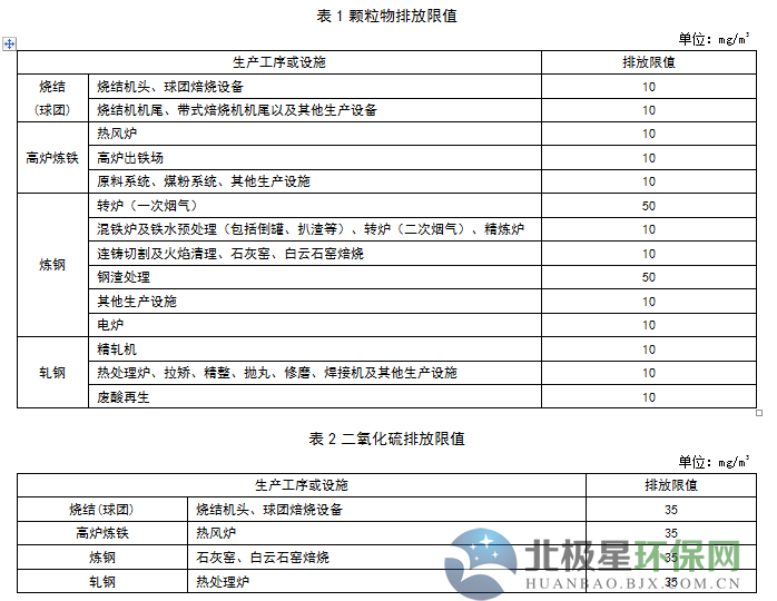 1、鋼鐵工業大氣“超低排放”限值規定,燒結(球團)的顆粒物、SO2、NOx分別為10mg/Nm3、35mg/Nm3、50mg/Nm3。
