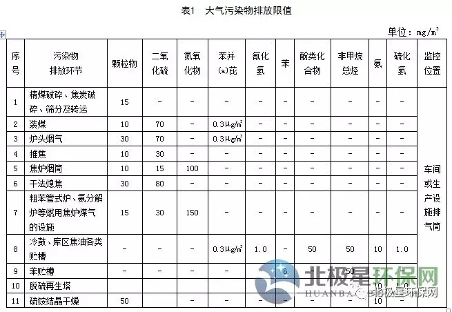 煉焦化學工業大氣污染物排放標準