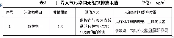 2、無組織排放污染物濃度限值
