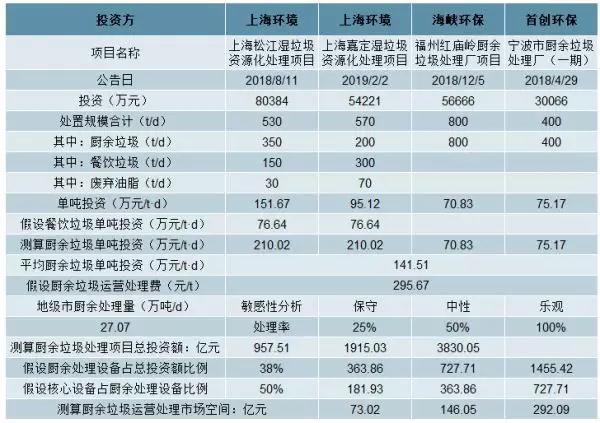 餐廚垃圾投資及運營市場空間測算